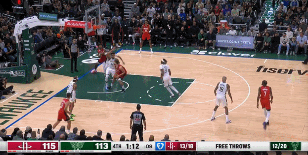 末节关键时刻,字母哥开始了奇葩时刻,进攻干扰球,6罚仅2中,3个失误,亲手把雄鹿送走了。
