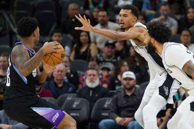 马刺带着11分落后差距进入第四节比赛,文班亚马完成劲爆隔扣,卡斯尔攻传结合也是引领马刺重新追平比分。只是爵士多点开花打出一波关键11-2攻势,马刺随后被拉开两位数落后差距,最终马刺爆冷输给爵士结束8连胜。